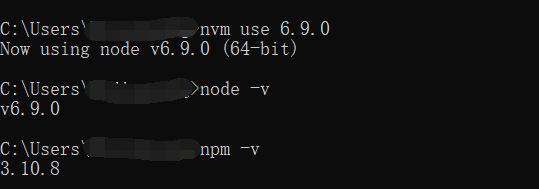 nvm use 6.9.0 v6.9.0 npm -v 3.10.8