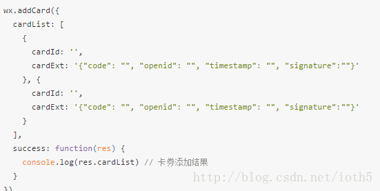 拿到这些数据之后,看下图,是不是跟小程序官方文档的一样的,这样就可以 打开卡券了