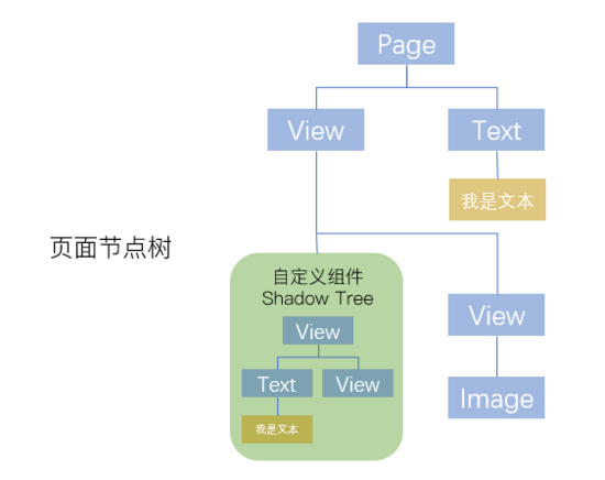 在页面引用自定义组件后,当初始化页面时, Exparser 会在创建页面实例的同时,也会根据自定义组件的注册信息进行组件实例化,然后根据组件自带的 data 数据和组件WXML,构造出独立的 Shadow Tree ,并追加到页面 Composed Tree 。创建出来的 Shadow Tree 拥有着自己独立的逻辑空间、数据、样式环境及setData调用: