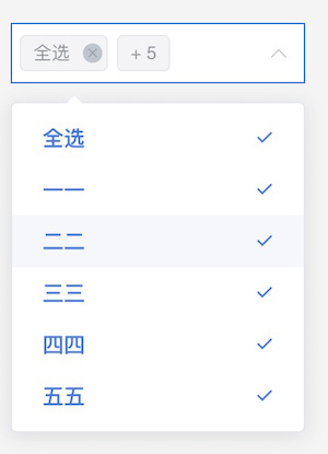 <template> <el-select multiple collapse-tags v-model='selectedArray' @change='changeSelect' placeholder='请选择'> <el-checkbox v-model="checked" @change='selectAll'>全选</el-checkbox> <el-option v-for='(item, index) in options' :key='index' :label='item.name' :value='item.name'></el-option> </el-select> </template>
