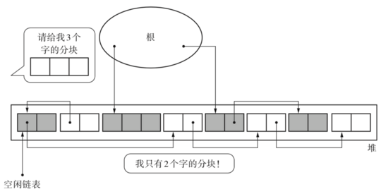缺点是清除后内存会产生很多细化的分块,所以又衍生了标记-整理法,不细讲。