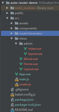 Layout.vue ,即默认为当前路由的根路由Index.vue , 即默认为当前层的空路由(根路由入口直接渲染)使用方法,将 router.js 中的路由对象替换成自动生成的即可: