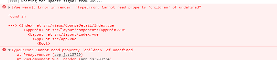 [Vue warn]: Error in render: "TypeError: Cannot read property 'children' of undefined"