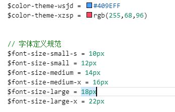 在开发中有时,我们定义了大量的基础样式变量,例如:
