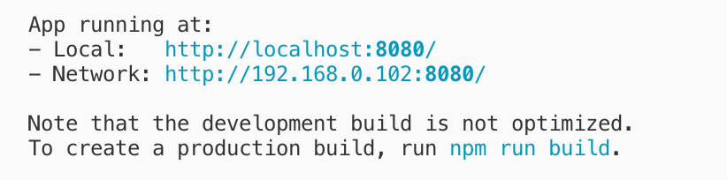 如上图所示,在开发环境中,8080便是端口号,这也是使用Vue脚手架创建的项目运行时的默认的端口。