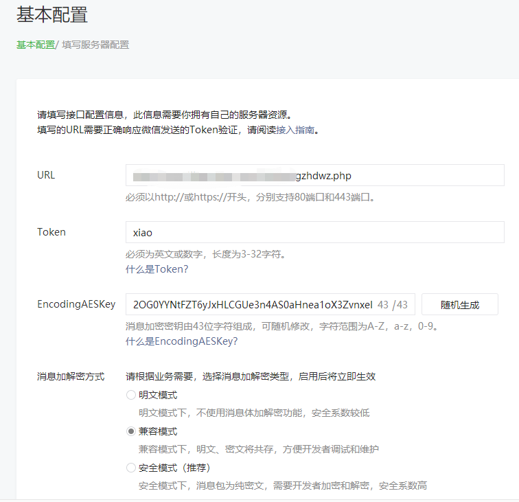 Token在代码里面自己设置,要对应的,EncodingAESKey随机生成。