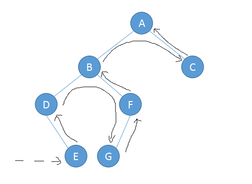 因此我们可以得之上面二叉树的遍历结果如下:前序遍历:ABDEFGC 中序遍历:DEBGFAC 后序遍历:EDGFBCA
