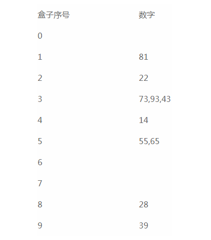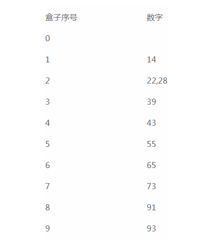 然后根据十位数字排序,再放到不同的盒子里,如下图