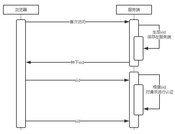seesion,然后保存seesion(我们可以将seesion保存在内存中,也可以保存在redis中,推荐使用后者),然后给这个session生成一个唯一的标识字符串,然后在响应头中种下这个唯一标识字符串。sid进行加密处理,服务端会根据这个secret密钥进行解密。(非必需步骤)sid保存在本地cookie中,浏览器在下次http请求的时候,请求头中会带上该域名下的cookie信息,cookie中的sid,然后根据这个sid去找服务器端保存的该客户端的session,然后判断该请求是否合法。