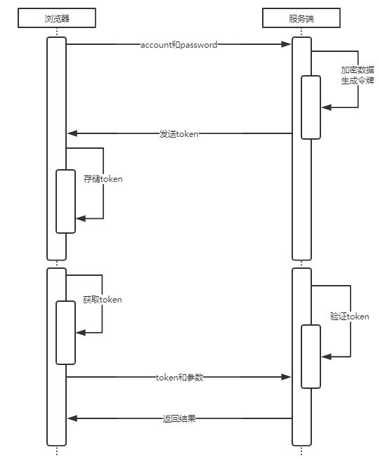 客户端使用用户名跟密码请求登录服务端收到请求,去验证用户名与密码验证成功后,服务端会签发一个Token,再把这个Token发送给客户端客户端收到Token以后可以把它存储起来,比如放在Cookie里或者Local Storage里客户端每次向服务端请求资源的时候需要带着服务端签发的Token服务端收到请求,然后去验证客户端请求里面带着的Token,如果验证成功,就向客户端返回请求的数据