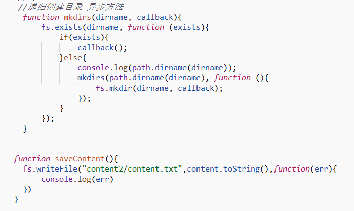 mkdirs('./content2',saveContent); (注: content2是新建文件名;saveContent是回调函数)