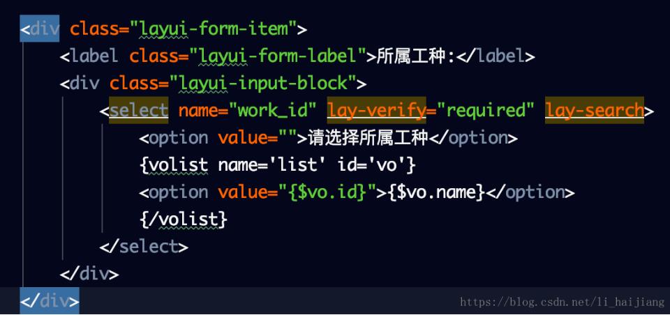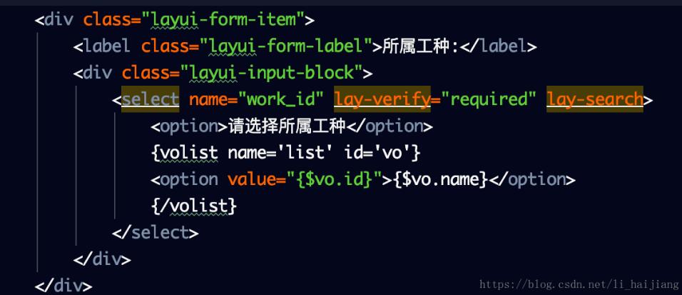 <select name="work_id" lay-verify="required" lay-search>