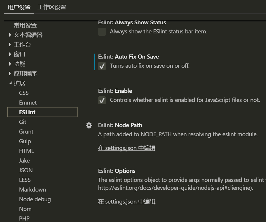 如上图,在设置勾选后配置后就会在setting.json里生成对应配置代码,不过由于Vetur的存在,此时的prettier其实并未起作用(可能是优先级问题吧,我也不清楚)