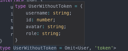 type UserWithoutToken = Omit<User, 'token'>