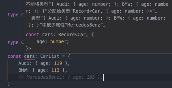 type CarList = Record<Car, {age: number}>