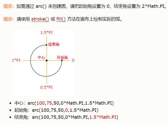 圆形的绘制:来自:https://www.w3school.com.cn/tags/canvas_arc.asp