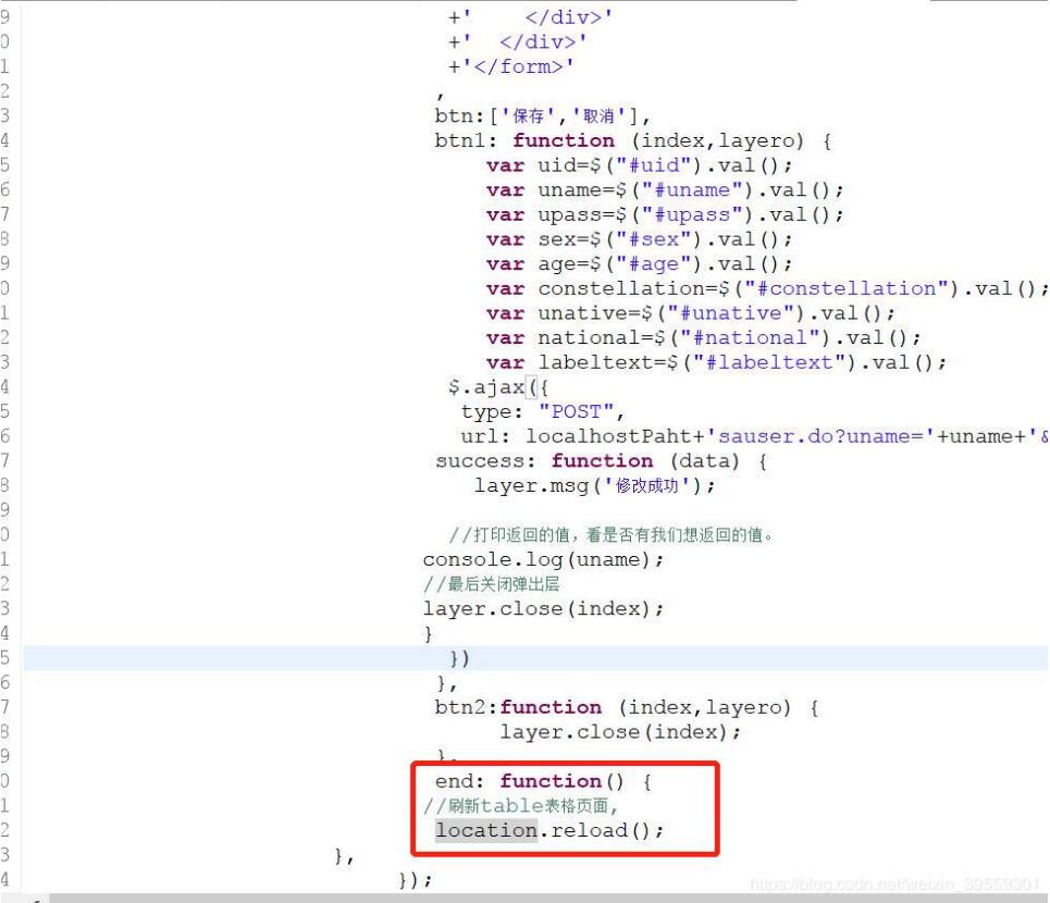 保存后刷新table表格