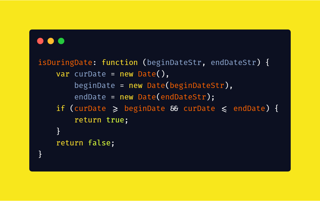 我们可以使用 jutils - JavaScript常用函数库的 isDuringDate 函数来实现