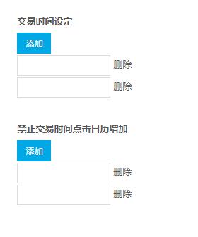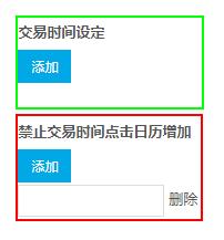 <b>禁止交易时间点击日历增加</b> <!--按钮--> <p class="data-stop">添加</p> <!--动态创建的位置--> <div class="stopBox"></div>