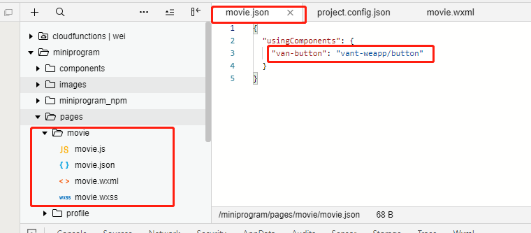 如图 在对应的json文件中引入vant的button