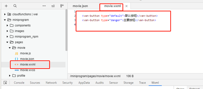 7.在对应wxml文件,写如下代码: