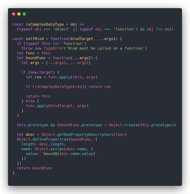函数的 bind 方法核心是利用 call,同时考虑了一些其他情况,例如: