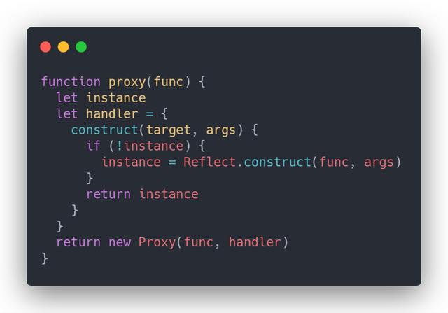 通过 ES6 的 Proxy 拦截构造函数的执行方法来实现的单例模式。
