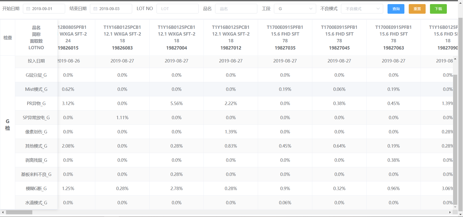 表格内数据整理:
