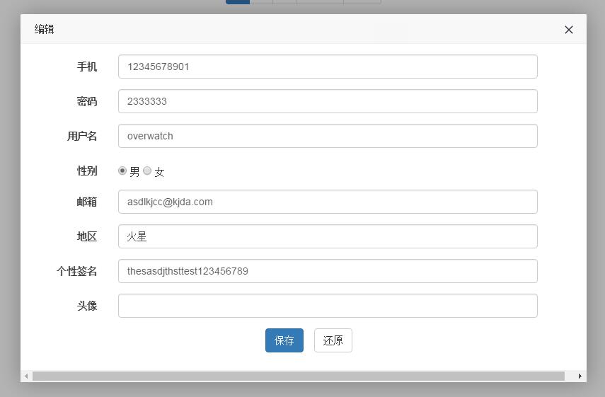 titles:['手机','密码','用户名','性别','邮箱','地区','个性签名','头像']