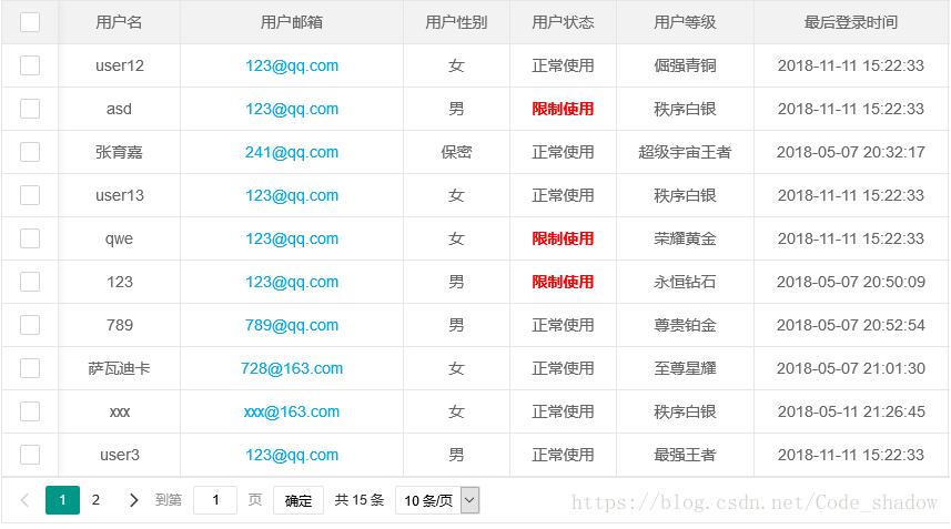 返回JSON数据格式,也是layui数据表格要求的格式