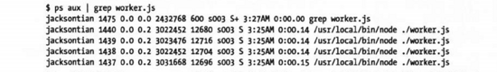 在linux中,我们通过ps aux | grep worker.js查看进程