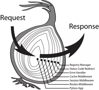 上面是在网上找的一个示意图,就是说中间件执行就像洋葱一样,最早use的中间件,就放在最外层。处理顺序从左到右,左边接收一个request,右边输出返回response