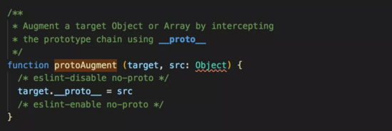 hasProto 是判断数组的实例是否有 __proto__ 属性,如果有 __proto__ 属性就会执行 protoAugment 方法,将 arrayMethods 重写到原型上。 hasProto 定义如下。