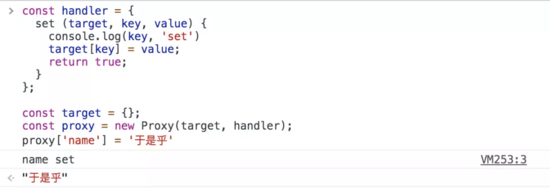 set(target, propKey, value, receiver):拦截对象属性的设置,比如 proxy.foo = v 或 proxy['foo'] = v ,返回一个布尔值。