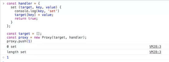 可以看到,通过下标获取某个元素会触发 getter 方法, 设置某个值会触发 setter