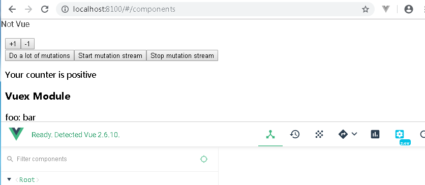 8、用chrome浏览器打开本地的其他项目,就可以看到浏览器已成功的安装了vue-devtools,可以用浏览器去调试vue项目啦。(此时不需要再在插件文件夹下运行npm run dev)
