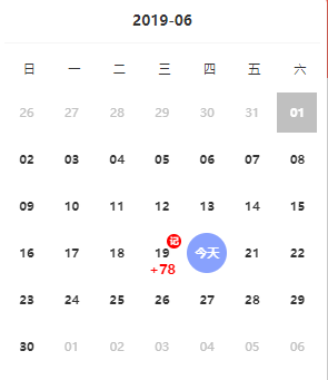 此日历可进行左右滑动,展示签到打卡信息,和大家分享一下。