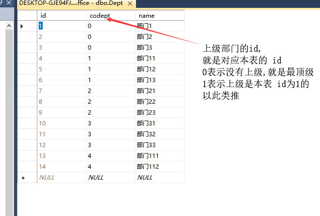 FROM [dbo].[Dept] WHERE codept ='0'
