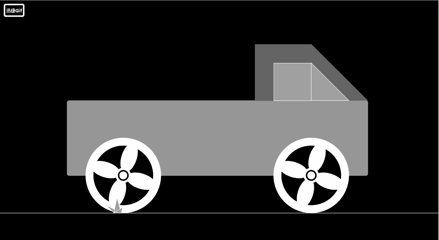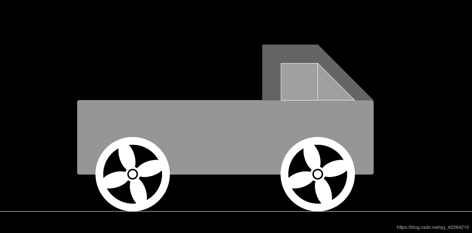 定义两个变量step(控制旋转速度)和angle(每调用一次draw()车轮旋转的角度)用于车轮的旋转。