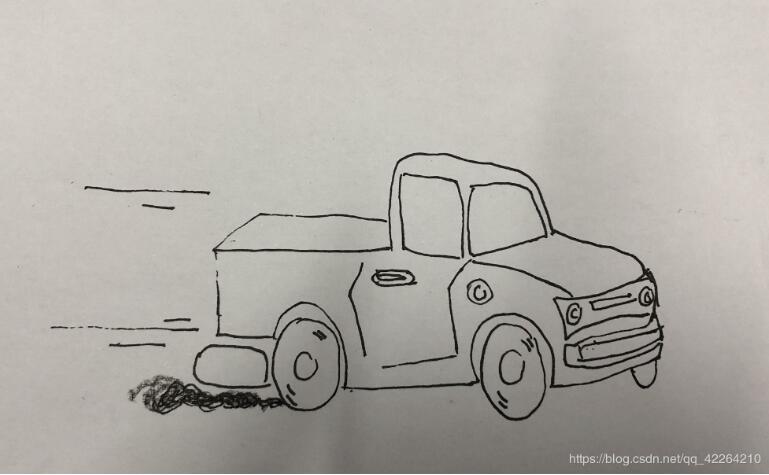手绘由于是静态的,来表现车的运动效果主要有速度线、车轮线、烟雾以及物体高速变形,通过这些静态的线条来还原物体运动的效果。而码绘则是通过参数的改变实现每一帧图像的变化来达到动态的效果,比起手绘更直观地体现了“动感”这个词。在细节方面,手绘明显更胜一筹,可以方便地勾勒出车的细节,而码绘由于参数、循环等一系列问题(可能动一个参数就要改一大片,以及坐标问题),在绘画体验上明显不行。整体比较下来,手绘给人的感觉更具艺术气息,能够感受到一股人情味,码绘虽然更容易产生动感的效果,线条更加精准,但是总感觉少了一份绘画原有的感觉,更像是另一种艺术创作形式,而不是在绘画。