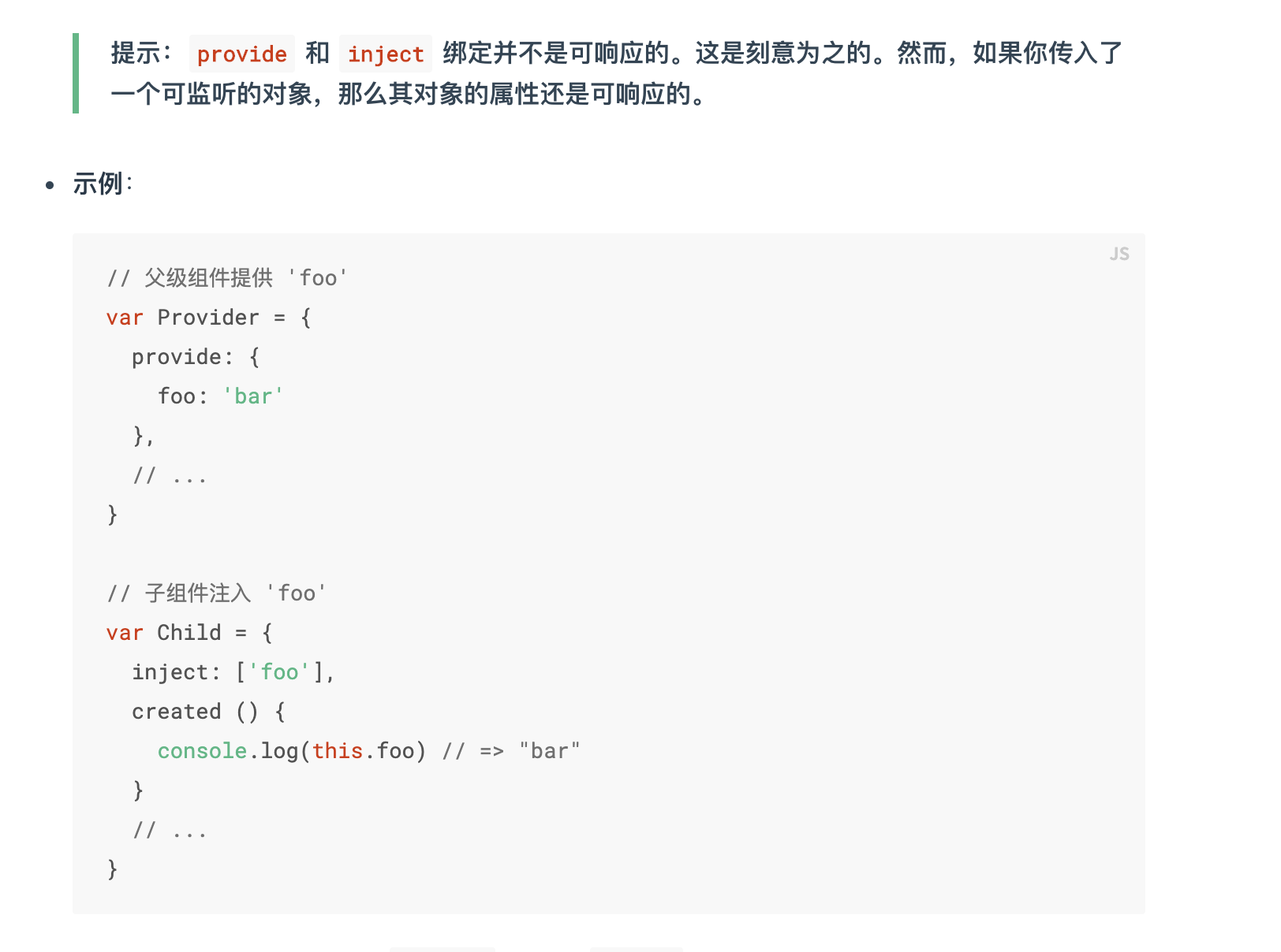 具体的可以看官网介绍provide/inject:https://cn.vuejs.org/v2/api/#provide-inject