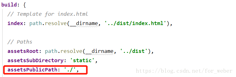 进入D盘就开始寻找static文件夹当然是找不到的。既然知道了是打包之后寻找文件的地址错误,就去config文件夹下的index.js中寻找问题。index.js中的build命令的配置有一个属性叫assetsPublicPath,它的值为‘/'。意思是根目录,这时会从index.html所在的硬盘的根目录下开始查找,自然无法找到。解决办法: