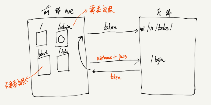 首先前端提供用户名和密码请求登录接口,后端验证之后返回给前端一个token,之后前端在请求需要权限的接口时携带这个token就可以了。