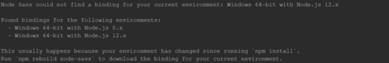 Node Sass could not find a binding for your current environment: Windows 64-bit with Node.js 12.x