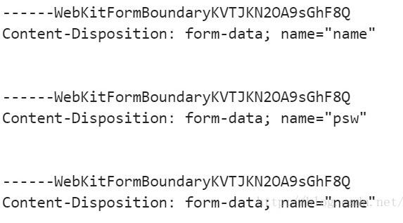 这也是一种比较常见的后数据格式,我们用表单上传文件时,必须使形式表单的加密类型属性或者AJAX的内容类型参数等于多部分/格式的数据。使用这种编码时格式到发送后台的数据长得像这样子 不同字段以开始,接着是内容描述信息,最后是字段具体内容。如果传输的是文件,还要包含文件名和文件类型信息