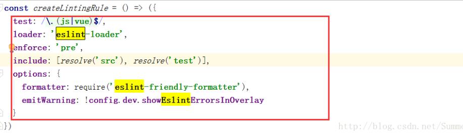 注意只删除和注释红色圈住的代码。另外这段也可能在不在createLintingRule中,也可能在module.export中。所以建议直接在webpack.base.config.js搜索eslint-loader。最后记得重跑项目。