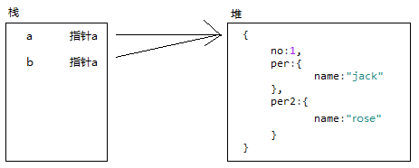 //a赋值给b,此时b会在栈开辟一个空间b,用来放置address1,这个指针指向a所在堆的对象数据