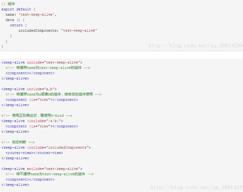 exclude: 字符串或正则表达式。任何匹配的组件都不会被缓存。