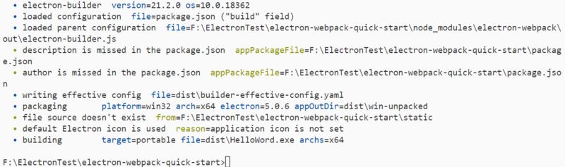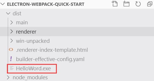 我想打包成一个免安装的 exe程序,所以我在 package.json 文件里添加了: