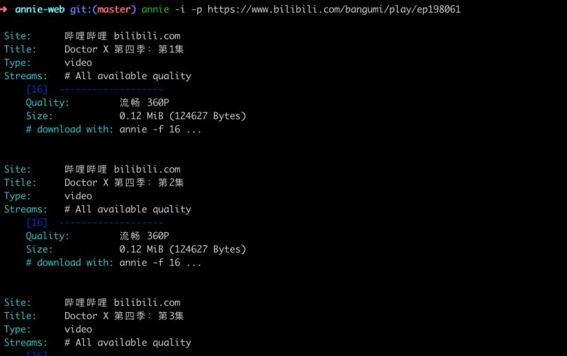 为什么做这个东西,是突然间听一后端同事说起Annie这个东西,发现这个东西下载视频挺方便的,会自动爬取网页中的视频,然后整理成列表。发现用命令执行之后是下面的样子: